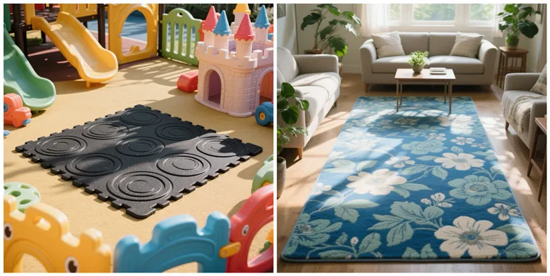 Gumi padlószőnyegek: Alkalmasabb a magas ruhák forgatókönyveihez, például a szabadban, az ipari és kereskedelmi területeken, vagy beltéri környezethez, amelynek magas a nem csúszás, párnázás és környezetvédelem (például tornatermek, gyermekszobák). Noha ára általában magasabb, mint a vinil padlószőnyegek, tartósságuk biztosítja a hosszú távú költséghatékonyságot.